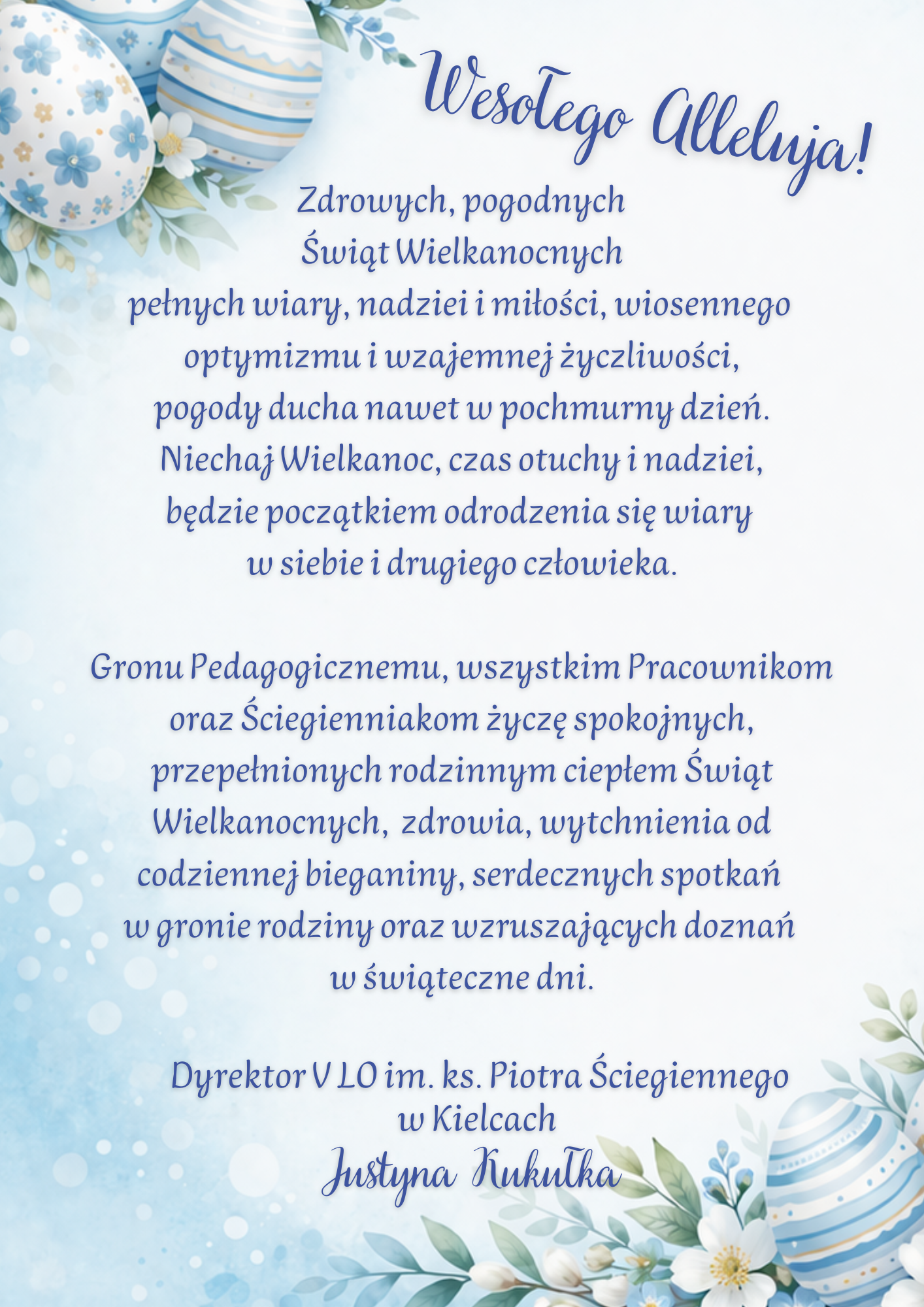 Drodzy Nauczyciele , Uczniowie i Pracownicy administracji ze Ściegiennego , z VLO!